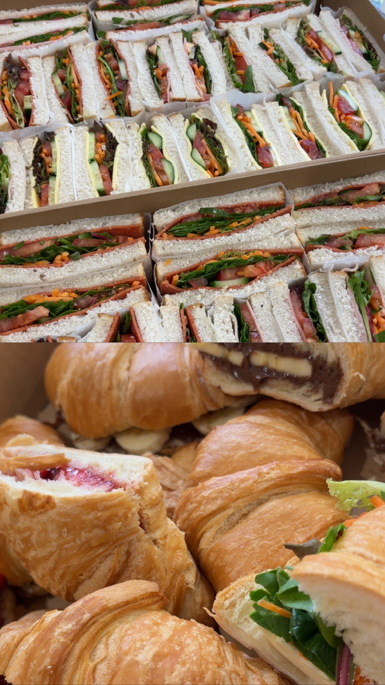 This box includes 6 stuffed croissants (12 halves) and 6 stuffed sandwiches(12 halves) , prepared fresh and ready to serve. Ideal for brunch, meetings, gatherings, or family events.